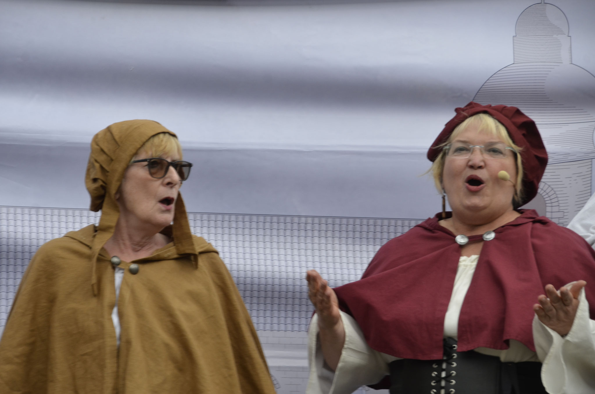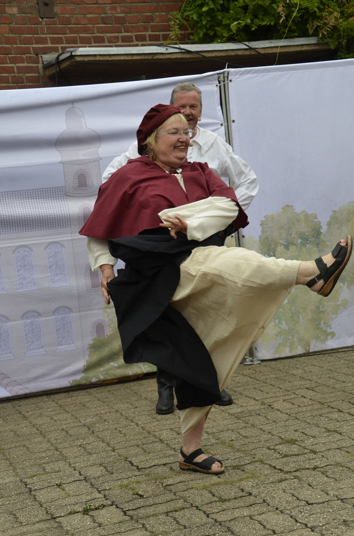 Der unbestrittene Höhepunkt war jedoch das Historienspiel im Museumshof. Schon vor Beginn drängten sich die Besucherinnen und Besucher bis auf das Nachbargrundstück, um einen Platz zu ergattern. Diesmal führte die Handlung nach Prag: Jans Tochter Lambertine brachte dort seine erste Enkelin, Maria Dorothea, zur Welt. Natürlich ließ es sich Griet nicht nehmen, ebenfalls zu erscheinen. Doch die Feier wurde überschattet, als zwei feurige Ungarn auftauchten und Mutter und Kind in Gefahr brachten. Dank Lambertines mutigem Eingreifen und Jans Unterstützung konnte die Familie schließlich gerettet werden – und die Aufführung endete, wie immer, mit den legendären Worten: