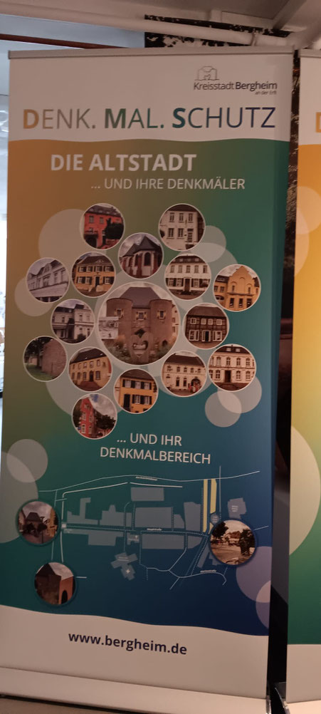 Im Erdgeschoss stellte die Untere Denkmalbehörde ihre bedeutende und umfangreiche Arbeit vor, mit der sie seit vielen Jahren für den Schutz und die Pflege der Denkmäler in der Bergheimer Altstadt verantwortlich ist. Die anwesenden Mitarbeiterinnen standen den interessierten Gästen als kompetente Ansprechpartnerinnen zur Verfügung und boten einen tiefen Einblick in ihre Aufgaben.