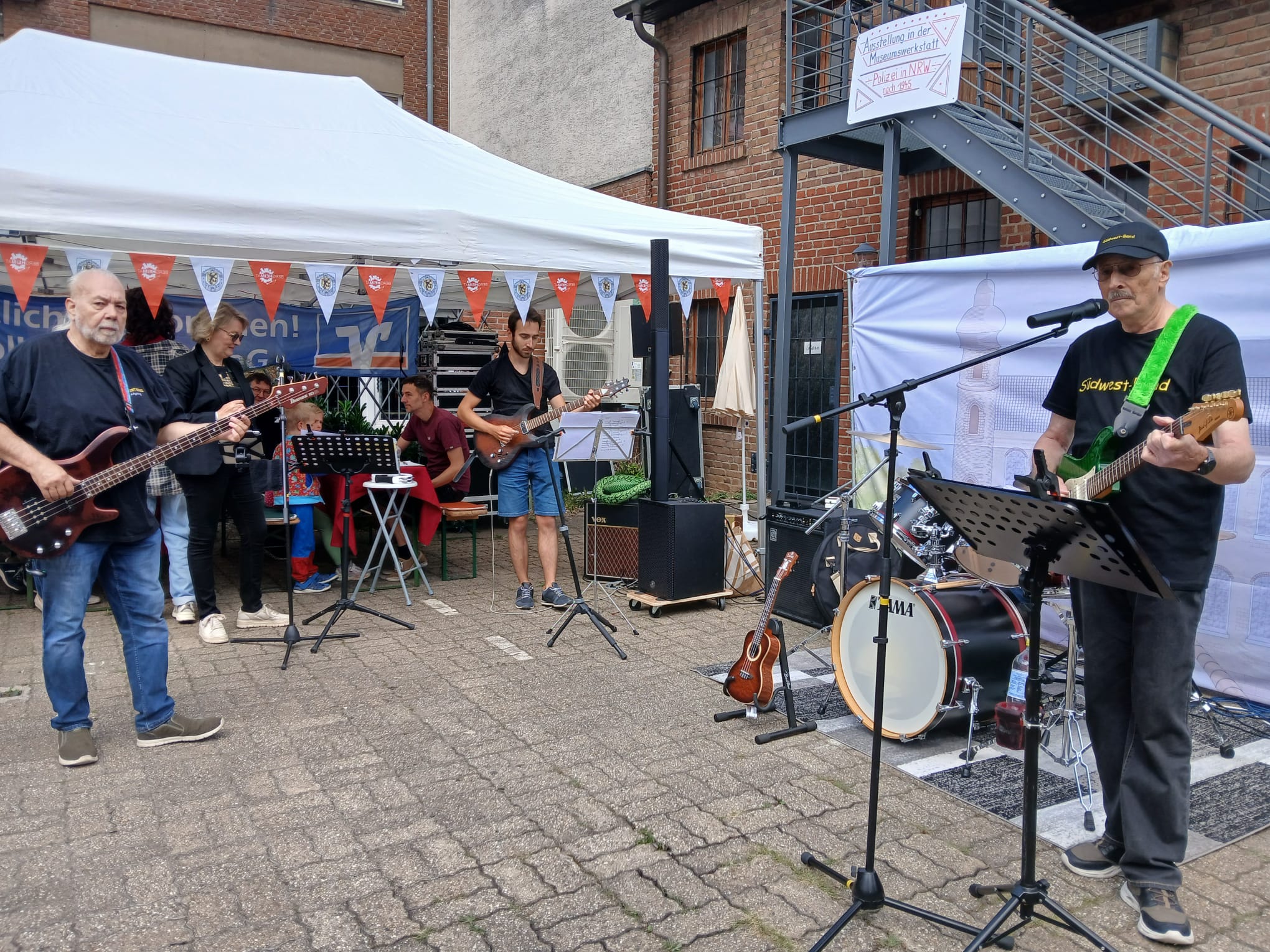 Den Auftakt machte die Südwest-Band, die bereits am frühen Nachmittag viele Gäste auf das Gelände lockte. Auch die Speed-Führungen im Museum waren ein voller Erfolg – gleich fünfmal führten unsere Guides Interessierte durch die Ausstellung. In der Museumswerkstatt informierte Thomas Irmenbusch geduldig über das mittelalterliche Leben in Berghoven und über Ritterrüstungen. Im Hof herrschte den ganzen Tag über reges Treiben: selbstgebackene Kuchen, Gegrilltes, erstmals auch Spitzbrötchen sowie Bier vom Fass und weitere Getränke sorgten für eine rundum gute Versorgung.